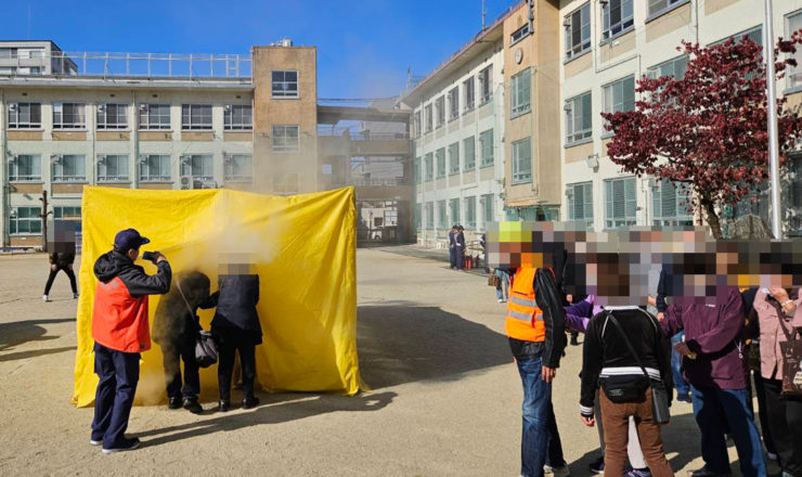 学区委員長様、中村区役所職員様、中村消防署職員様より地域防災、自主防災対策など説明。 また参加者が主体的に、水消火器・煙道・A...