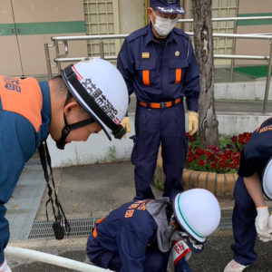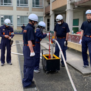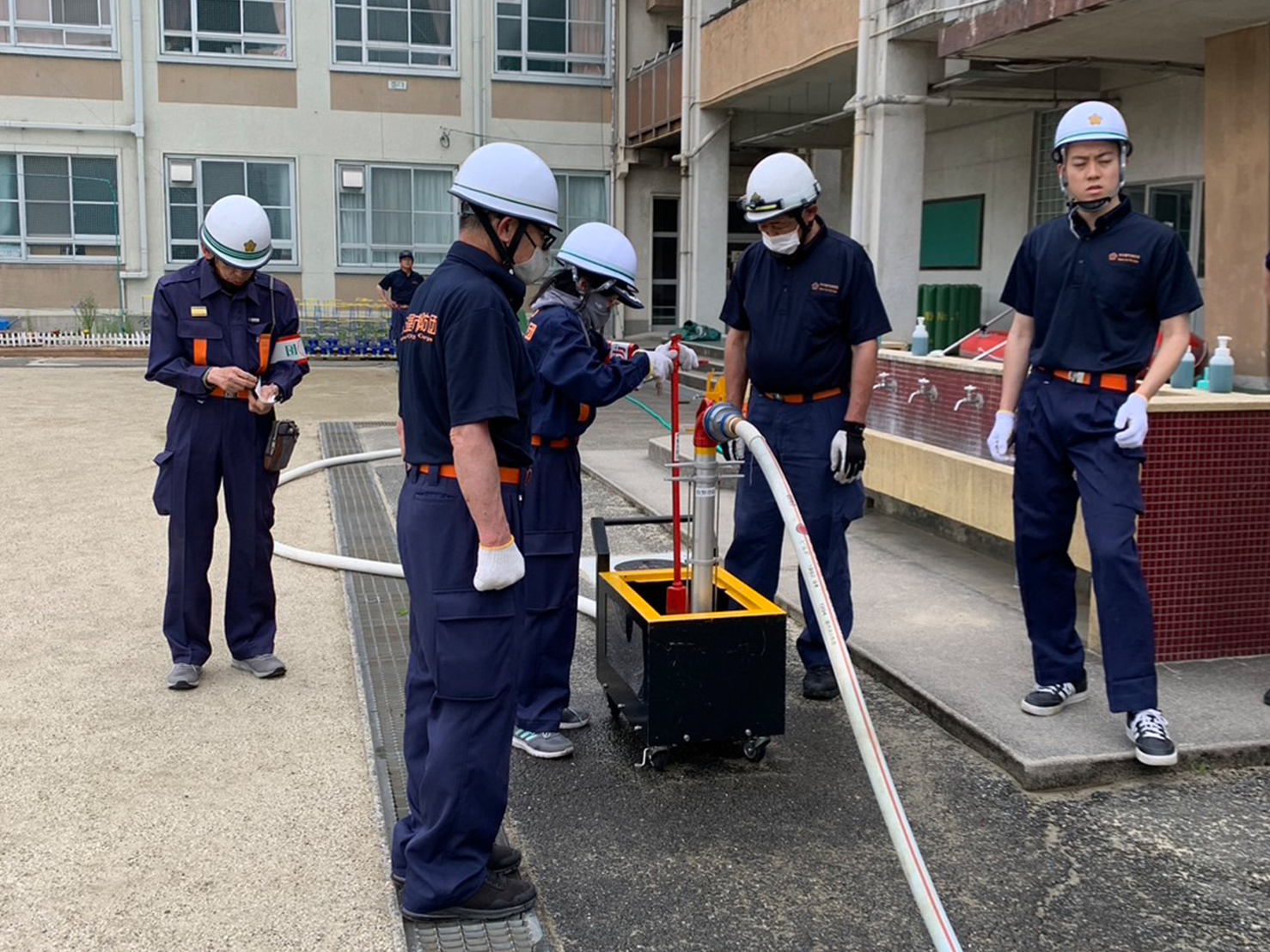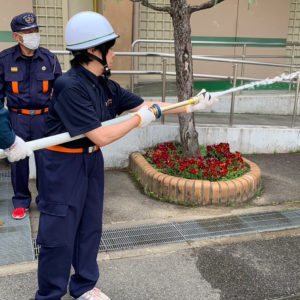 物品検査、放水訓練を実施しました 1.物品検査の一部として、ボート組立、水槽2台点検 2.スタンドパイプを使い放水訓練 地域住民に向けた模擬セッションも実施しました。 避難訓練、初期消火訓練を実施いたしました 協力事業者の方々の消防訓練